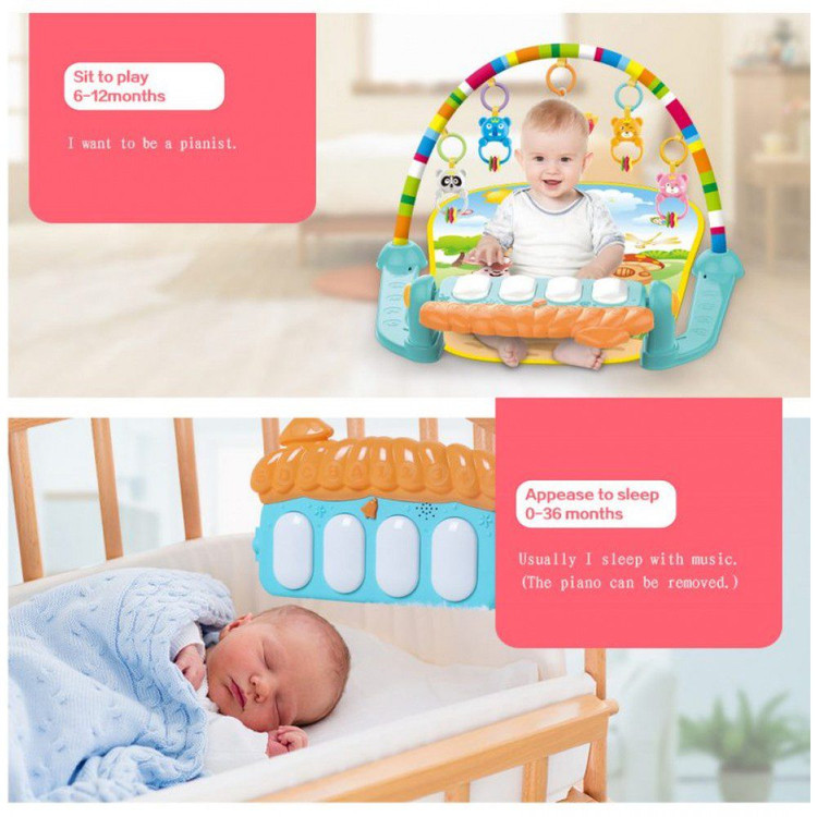 کودک می تواند در 3 حالت نشسته، خوابیده رو به شکم و خوابیده رو به پشت بر روی این تشک بازی کند و از پیانو هم استفاده کند.