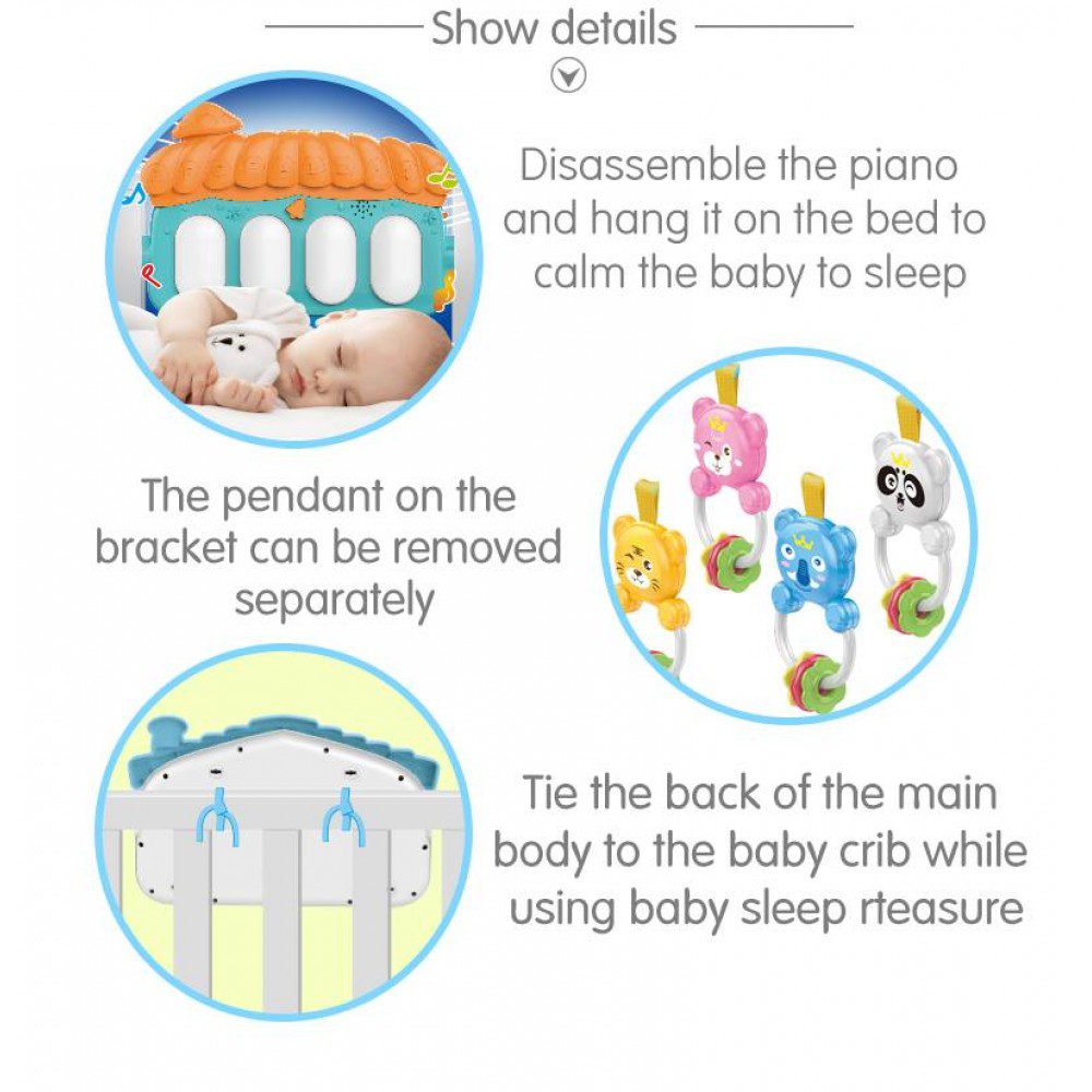 کودک می تواند در 3 حالت نشسته، خوابیده رو به شکم و خوابیده رو به پشت بر روی این تشک بازی کند و از پیانو هم استفاده کند.