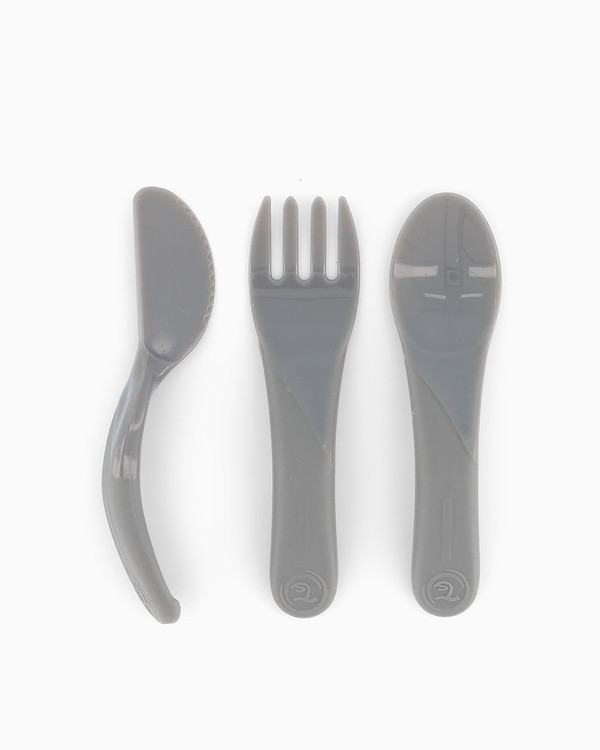 ست قاشق و چنگال غذاخوری آموزشی پلاستیکی طوسی تویست شیک پک ۳ تایی