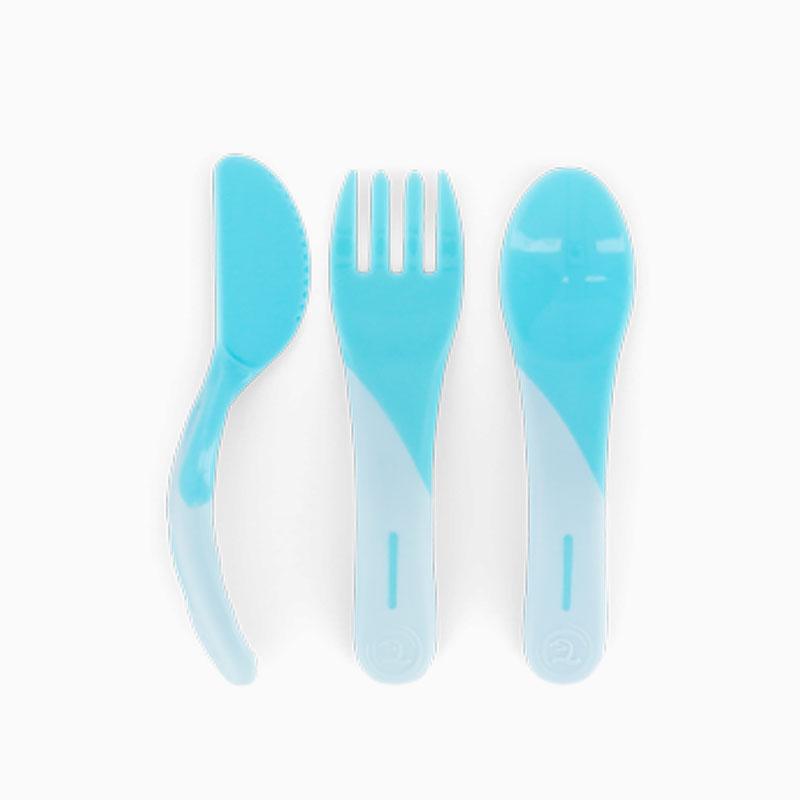 ست قاشق و چنگال غذاخوری آموزشی پلاستیکی طوسی تویست شیک پک ۳ تایی