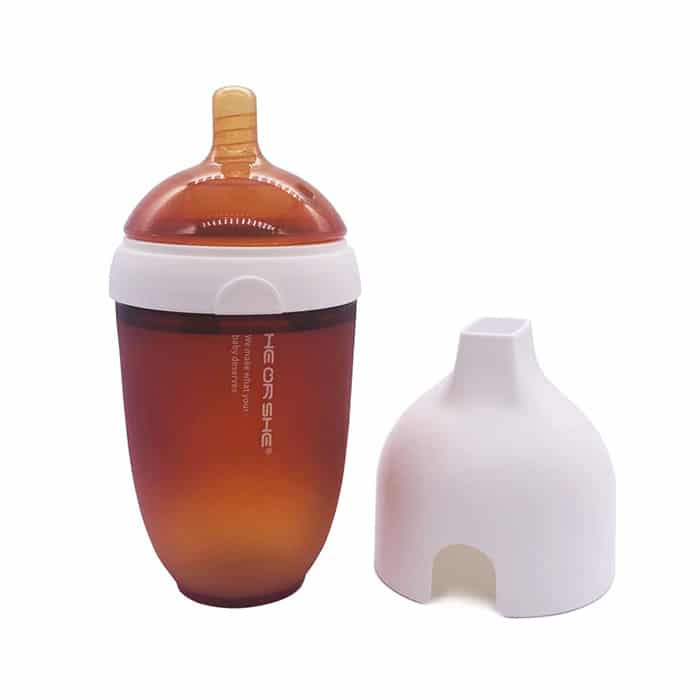 نوزاد دلبند شما با استفاده از شیرخوری تمام سیلیکونی برند آمریکایی HE OR SHE ، تغذیه ای بسیار شبیه به تغذیه از شیر مادر را تجربه خواهد کرد. بطوریکه این شیشه شیر مناسب نوزادانی است که بطور همزمان از شیشه شیر و سینه مادر شیر میخورند.