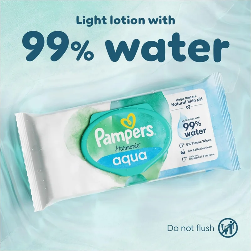 دستمال مرطوب نوزاد و کودک پمپرز مدل هارمونیک بسته 44 عددی