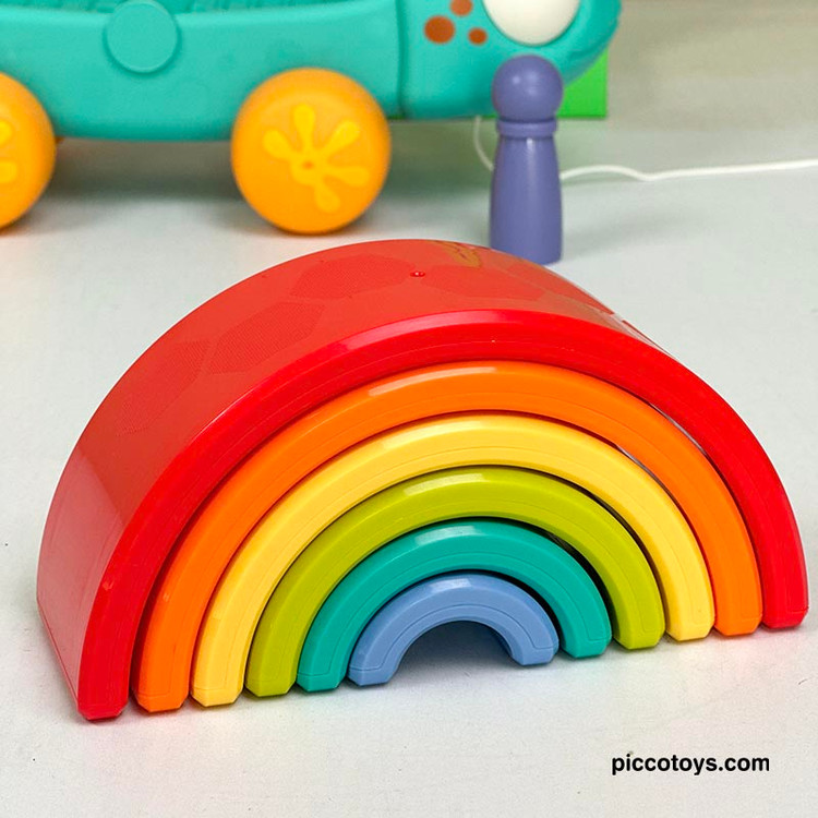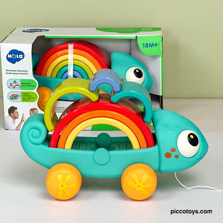 پازل آفتاب پرست رنگین کمانی هولا تویز HE795700 یک اسباب بازی با رنگ های جذاب مناسب کودکان 18 ماه می باشد. این محصول باعث تقویت مهارت های حرکتی کودکان می کند و دارای یک آفتاب پرست بامزه با چهار چرخ، 6 عدد قوس رنگین کمانی و یک عدد استوانه رنگی است.