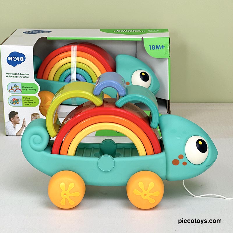 پازل آفتاب پرست رنگین کمانی هولا تویز HE795700 یک اسباب بازی با رنگ های جذاب مناسب کودکان 18 ماه می باشد. این محصول باعث تقویت مهارت های حرکتی کودکان می کند و دارای یک آفتاب پرست بامزه با چهار چرخ، 6 عدد قوس رنگین کمانی و یک عدد استوانه رنگی است.
