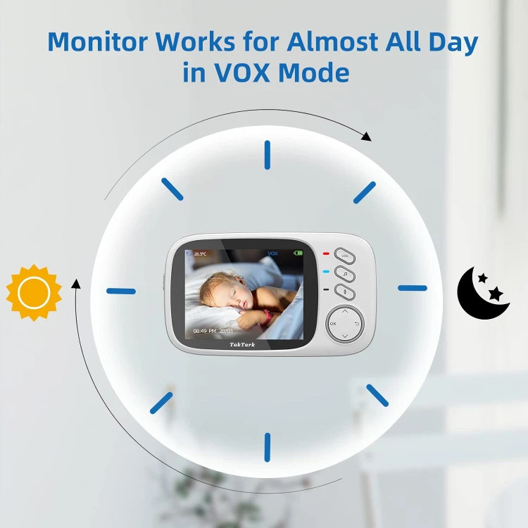 دوربین کودک TakTark، دوربین نظارت تصویری کودک، دوربین LCD 3.2 اینچی، نظارت بر دمای بدن کودک، دید در شب، ارتباط دو طرفه، تلفن تصویری کودک