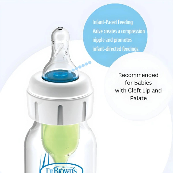 در موارد شکاف کام، نوزادان به مشکل مکیدن یا شیرخوردن طبیعی از طریق فشار منفی مواجه هستند. برند Dr. Brown’s مدل تخصصی Specialty Feeding System را ارائه میدهد که با شیر جریاندهی اتوماتیک از طریق فشار زبان (compression feeding) این مشکل را برطرف میکند . این سیستم شامل یک شیار یکطرفه یا “Infant-Paced Feeding Valve” آبی رنگ در نوک سرشیشه بوده و استفاده از نیروی زبان برای تغذیه کافیست بدون نیاز به مکش.